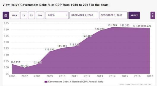 意大利负债率持续十几年稳居全球第三名的位置,目前已经超过GDP的130%,而且未来将继续保持这一“殊荣”。2008年的经济危机,彻底打破了意大利以往舒适的生存路线。由于经济危机,意大利的服务业和中高端制成品的贸易额被狠刮了一刀,而且还要应付日益增加的社会福利开支,尤其是新增就业岗位匮乏,导致无数年轻人失业,这都需要政府买单,别无他法,只能继续举债度日。