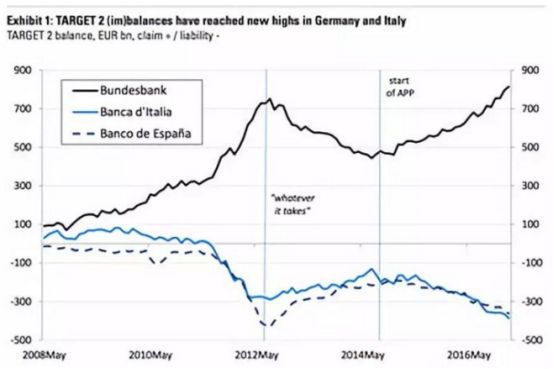 这是从经济危机开始,德国和意大利在欧洲央行的余额,意大利早就已经揭不开锅了,和作为领头羊的德国形成鲜明对比,这十年,德国逆势上进赚个盆满钵满,而悲催的意大利则已经快把底裤赔出去了。