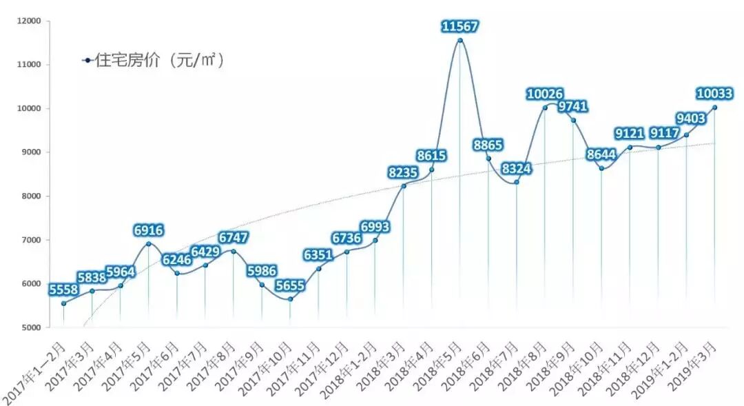 跌不跌还要看后续的走势,然而事实再次打脸,贵阳房价在2018年下半年低位修复筑底之后,于2019年2月又开始震荡反弹。那么下跌后的8600元基本就是筑底值,意味着无论如何,房价都很难跌破这道红线。