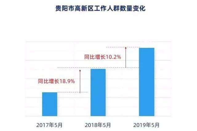 企业的入驻引来了源源不断的人才,在2019年5月的报告中,高新区同比去年工作人群(贵漂)同比增长了10.2%,且大部分都是具有高消费能力,年龄在25-34岁的年轻人。未来这将是撑起贵阳经济的中干力量,也是托起贵州房价的中流砥柱。