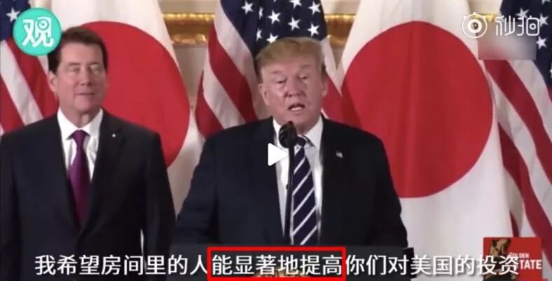 特朗普在演讲中在盛赞美日关系“前所未有地牢固、有力和紧密”,但他还不忘自己来此的目的:
