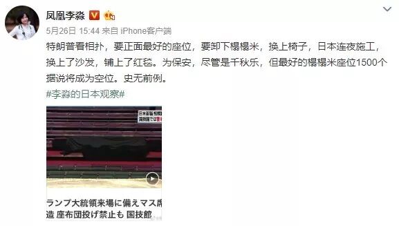 然而还不止如此。特朗普这次去日本,被招待得简直像大爷一样舒适。