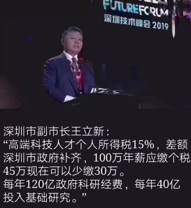 在2019未来论坛深圳技术峰会上,深圳市副市长王立新表示,“在境外人才引进政策方面,来粤港澳大湾区工作的短缺人才也将享受15%的个人所得税减免优惠。”