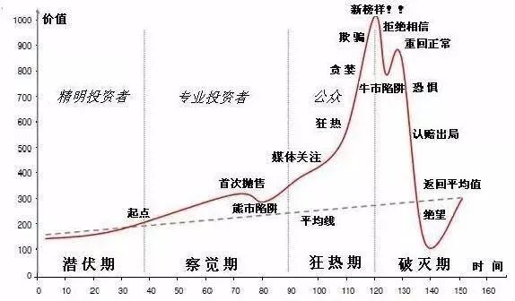 可怕的是,在这个缓慢上涨的过程中,大家形成”永远涨“的共识,越来越多的人参与到游戏中,以至于出现指数式暴涨,最后涨至顶点无人接盘,一路坠落。