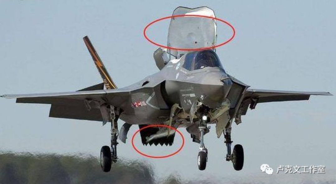 因为要兼容垂直起降时的升力风扇,F-35B战斗机是F-35家族中体型最为臃肿,大家管F35B战斗机叫“肥电”。因为没有“舔地”需求,该型号没有装备机炮,但是可以挂载机炮吊舱。