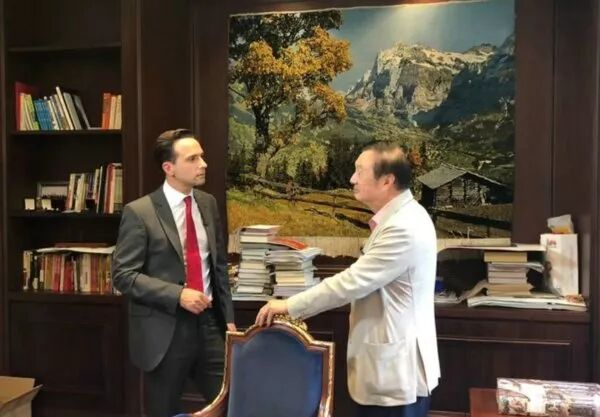 在接受彭博社记者采访的过程中,任正非还带领记者参观了他的办公室。