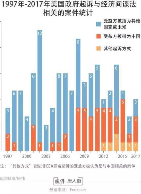 再回顾中美贸易摩擦加剧之前的10年,美国政府起诉的180起经济间谍和盗取商业机密的案件中,至少有55起涉及到了中国公民或者美籍华裔,而且,数量在不断上升。