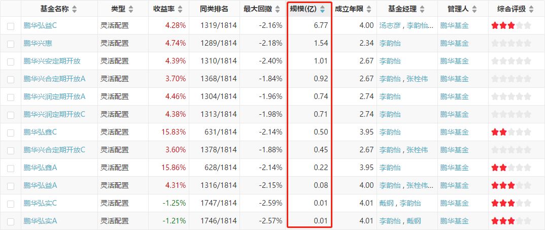 但进一步看却有点尴尬,因为其中9只是规模小于1亿的小基金,还包括5只5000万以下的迷你基金,比较像样的仅有3只。