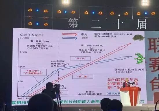 去年年末的北大光华新年论坛上,倪光南院士曾说,“华为和联想这30年来,犹如龟兔赛跑。”