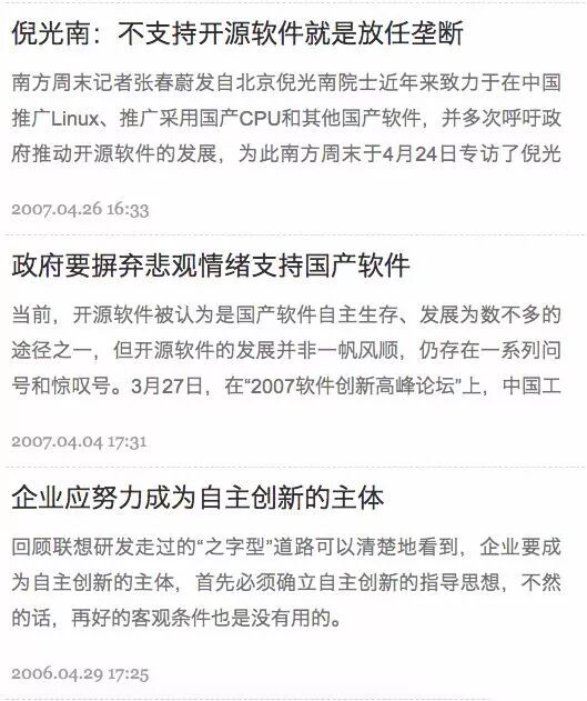 “支持柳传志们昨天运作的,有倪光南们前天积淀下来的技术成果;