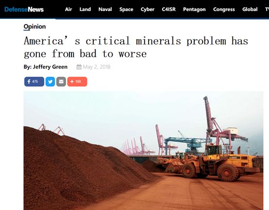 一些更“焦虑”的声音则来自美国的一些“防务资讯”类网站。比如一家名为“防务新闻”的网站(Defense News)在其今年5月一篇关于稀土的报道中就打出了“美国重要矿产资源的问题正在越发恶化”的大标题……