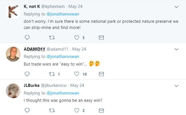 最后,除了上述这些新闻媒体和资讯网站,在美国的社交网站上,多数美国网民也对于中国一旦对稀土动手会对美国带来的影响而感到担心。他们还讽刺美国总统特朗普说:您不是说中国很容易就能打赢吗……
