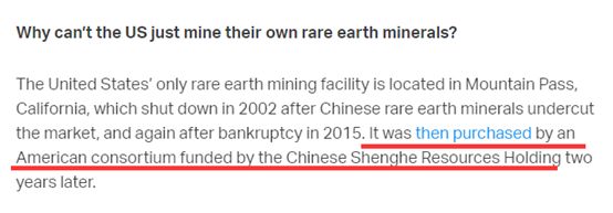 这篇文章还提到美国曾在2010年时做过一项官方调查,发现美国如果想恢复一条完整的、经济上可持续的稀土产业链条至少需要15年左右,可美国的高科技企业却等不了15年。