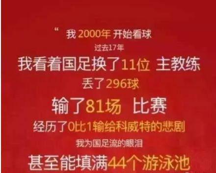 还有什么事情比国足输球更稳的?不是每种牛奶都叫做特仑苏,不是每支球队都叫做特能输。