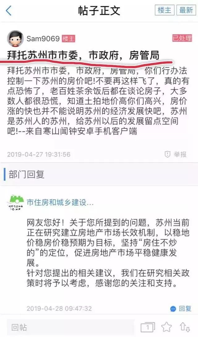在2019年真真假假的小阳春里,苏州市民向当地政府发出了一声疾呼:“拜托控制一下苏州房价吧!”,恐慌焦虑溢于言表。