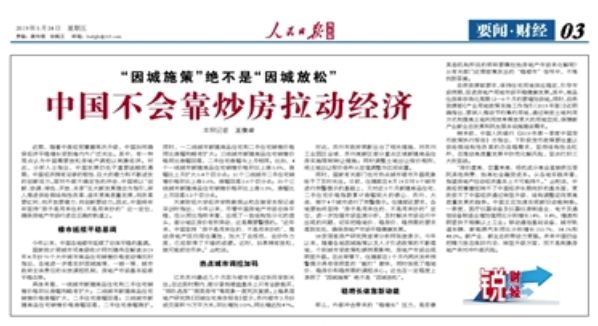 人民日报海外版警告“中国不会靠炒房拉动经济”,“因城施策”绝不是“因城放松”;
