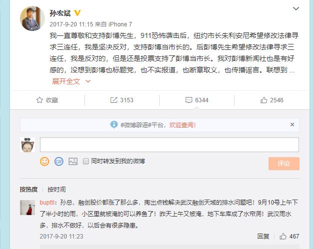不过,麻烦孙老板在赚了200亿后,麻烦把自家房子的问题解决一下啊,每次发微博的时候,也要看看你的评论啊。