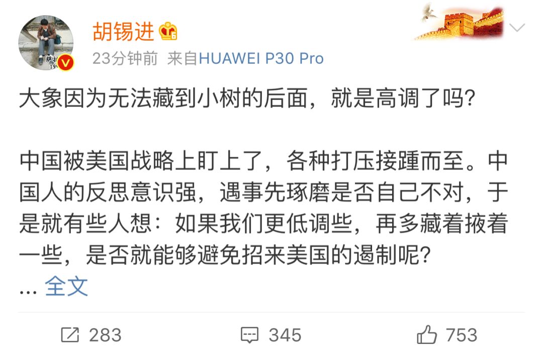 是的,大国中唯一30年没有打仗的中国不能背“好战”的锅,勤勤恳恳的中华民族不能接受中国复兴是从美国“偷来的”指责,孩子们去西方留学,我们尤其不能接受对他们都是“中国间谍”的声誉抹黑。我们对相互尊重、互利共赢的信奉十分真诚,为此老胡相信,自尊是起点,真诚和谦逊是路,勇气和智慧是我们走向目标的车和船。