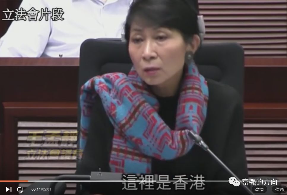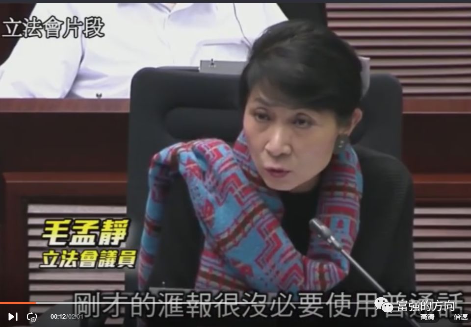 没想到的事,立法委员毛孟静用英语发言,指责她用普通话汇报,特别强调“这里是香港”,实际上他想表达的意思是“这里不是中国”:
