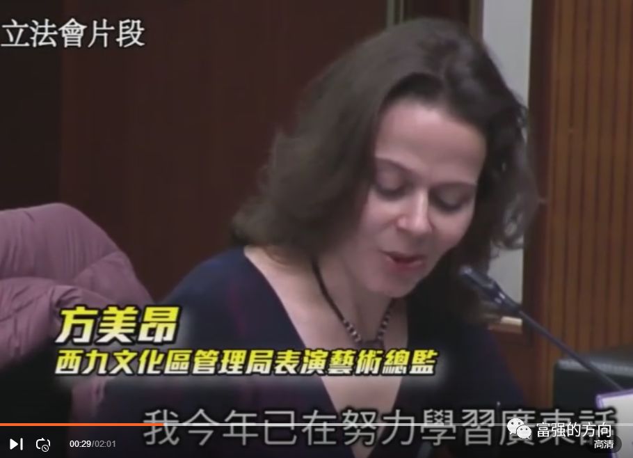 一位外裔面孔的西九文化区管理局表演艺术总监女士在立法会发言,发生了下列故事: