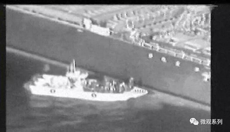 随后小船上的一群人,从油轮上移走一个“物体”