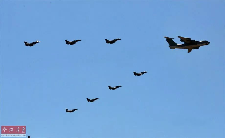 (图为2009年国庆大阅兵空警-200预警机与歼-11战斗机编队 摄影 人民网记者翁奇羽)