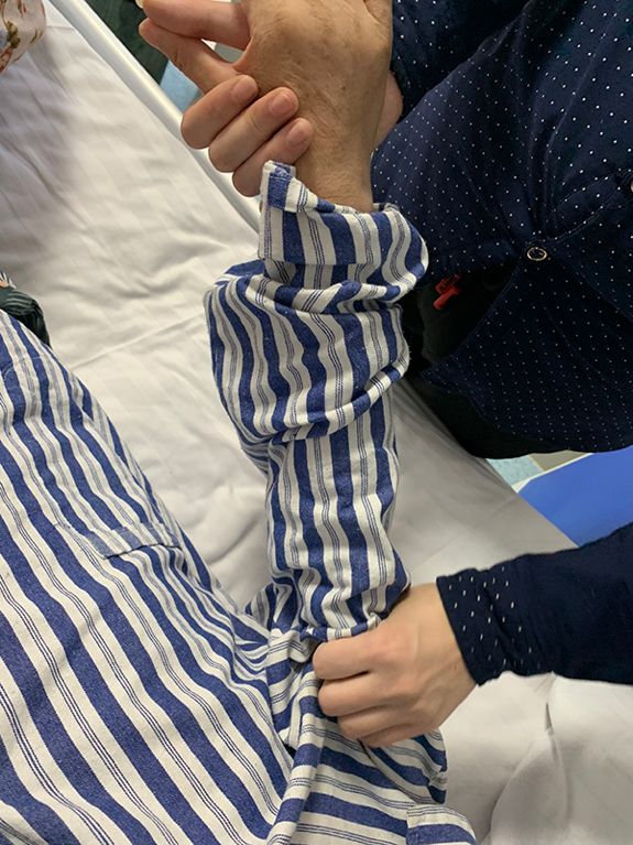 (图为张秀美的儿子在给她按摩 图源:澎湃新闻袁璐)