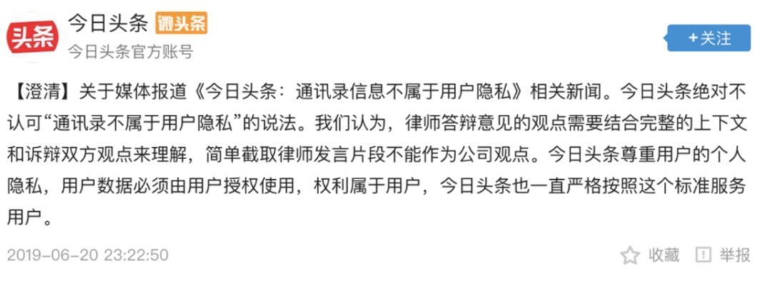 当天晚上,头条发布了简单的官方声明,表达了态度。