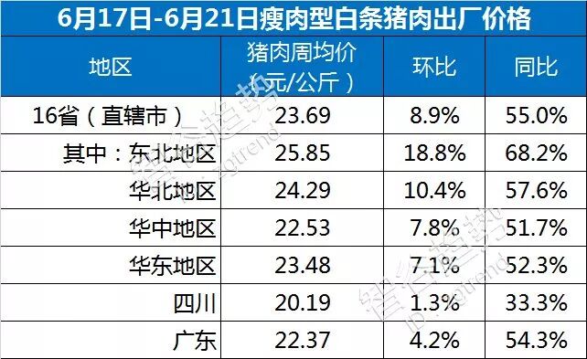农业农村部最新数据显示,就在上一周(6月17日-6月21日),有16个省市瘦肉型白条猪肉出厂价的周均值为每公斤23.69元,环比上涨8.9%,同比已经涨了55%。
