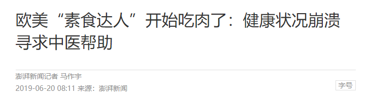 当然,你也可以选择吃素。不过,最近欧洲一位素食主义者浑身不得劲,问遍中西医后,医生告诉她:没事多吃肉。
