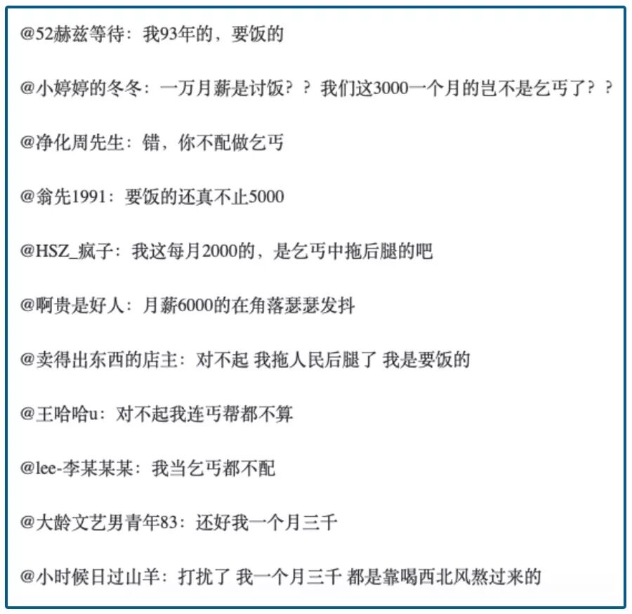 记得“月薪一万算讨饭”这个梗来自于上海某代女相亲的大爷口中,火爆一时: