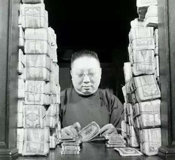 (图为当时国民党银行工作人员,金圆券贬值严重,点钞点到手软)