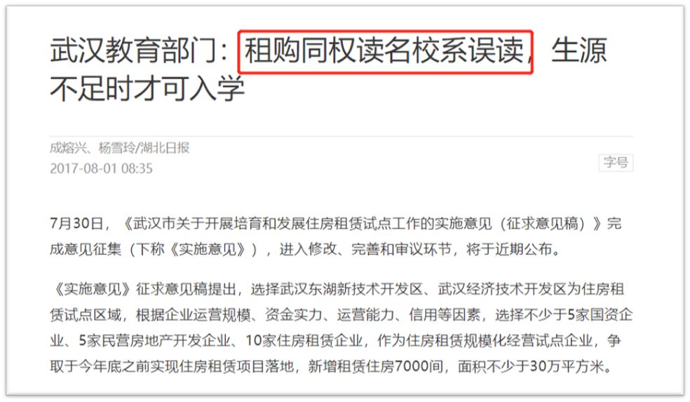 早在2017年,就有城市的教育部门直言不讳地表示 “租购同权”不等于租房就能上名校。在既有的教育资源分配中,户籍、房产、学位仍旧是首要衡量因素。