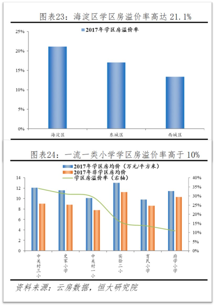 学区房高房价的背后,实质是教育溢价。同一地段,学区房相比于非学区房,普遍有20%左右的高溢价,部分名校的学区房溢价超过30%。