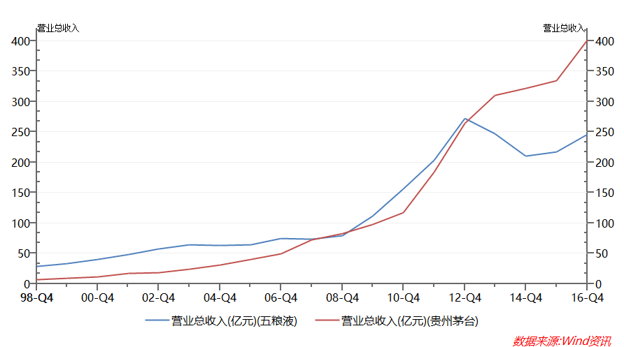 自此,茅台正式成为中国“白酒一哥”,而五粮液只能屈居老二,再无实力挑战老大的宝座。