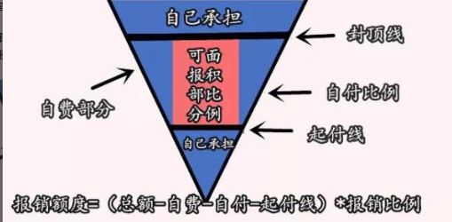 图中,医保的范围在起付线之上,封顶下之下,并且只能在规定范围内报销,一般来说,如果罹患重大疾病住院,社保大概可以报销60%左右。