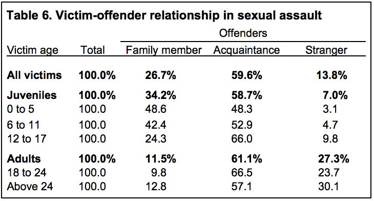 2000年,美国司法部曾发布了一个报告,报告集合了美国1991年至1996年性侵案数据,数据显示在0-17岁的儿童和青少年性侵案中,只有7%的凶手是陌生人。