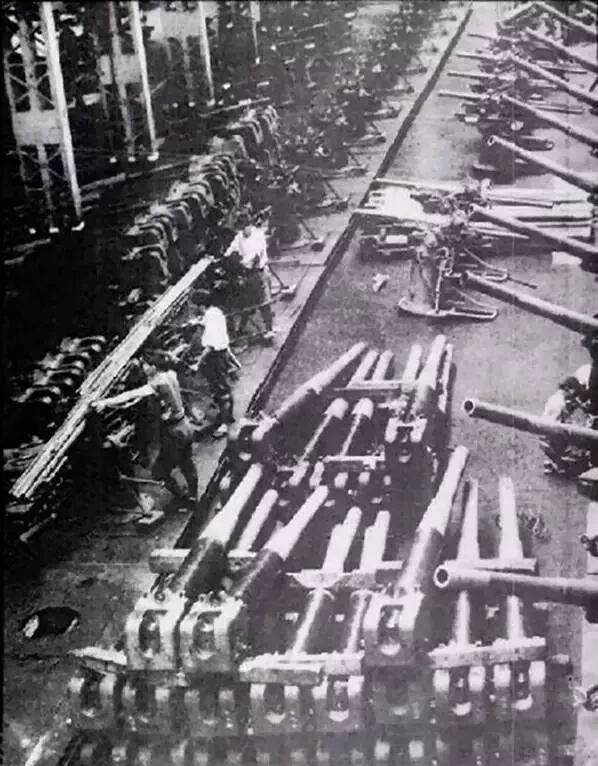 (图为当年日媒报道中日本兵工厂里待装配的高射炮)