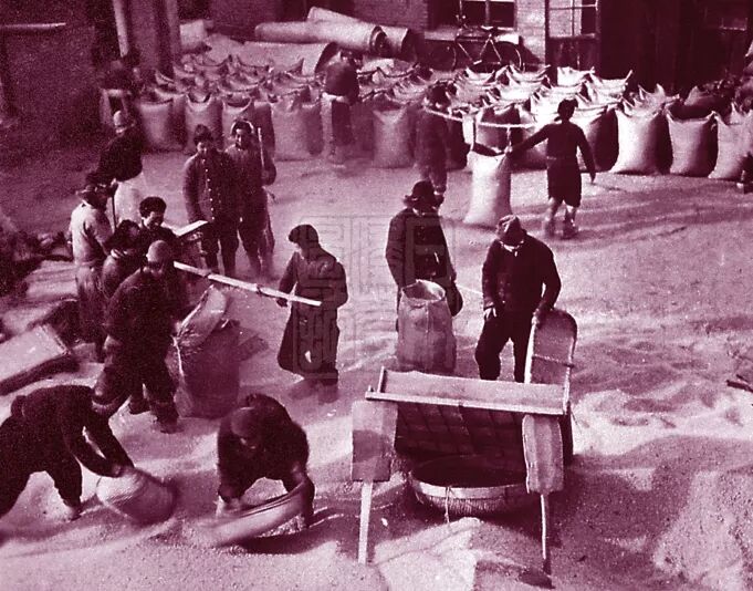 在掠夺农产品方面,“七七事变”后,日本在中国东北对农产品实行严格的“统制”和垄断,中国人食用大米即被定为“经济犯”。随着战争规模的扩大和对粮食的需求量增加,日本进一步将“统制”变为强制购销,即推行所谓的“粮食出荷”政策,强迫农民将所产粮食的绝大部分按最低收购价交售。各地“出荷”的粮食,占总产量的40%-50%。从1939年至1941年,仅伪东安省(黑龙江东南部)“出荷”的粮食即达33万吨。在关内,日军每次对敌后抗日根据地进行扫荡,都将抢粮作为主要任务之一。每年麦收之际,各地日军都会进行抢粮作战。在日占区,日军则以仅及市价一半的价格,强行征购军粮。所掠夺的粮食除供侵华日军食用外,大部分运回日本,以弥补其国内市场的粮食缺口。1939年,仅华中地区就有700万石大米被运往日本;1940年,这一数字增加到900万石。