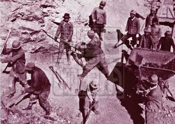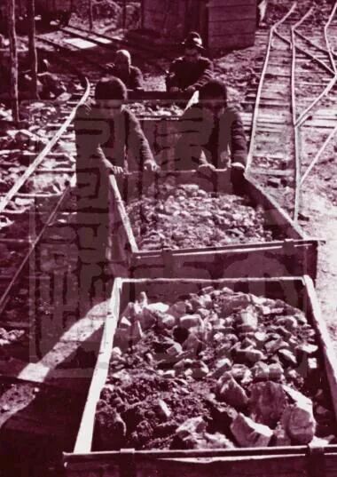 (图为大栗子沟铁矿工人在艰苦的环境下进行人工采矿)