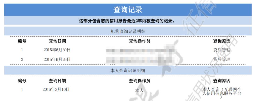 真的要查征信的话,个人查询记录也会在征信报告上体现: