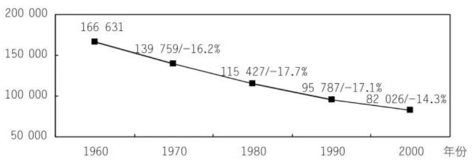 (图为1960—2000年扬斯敦人口总数及人口增长率)