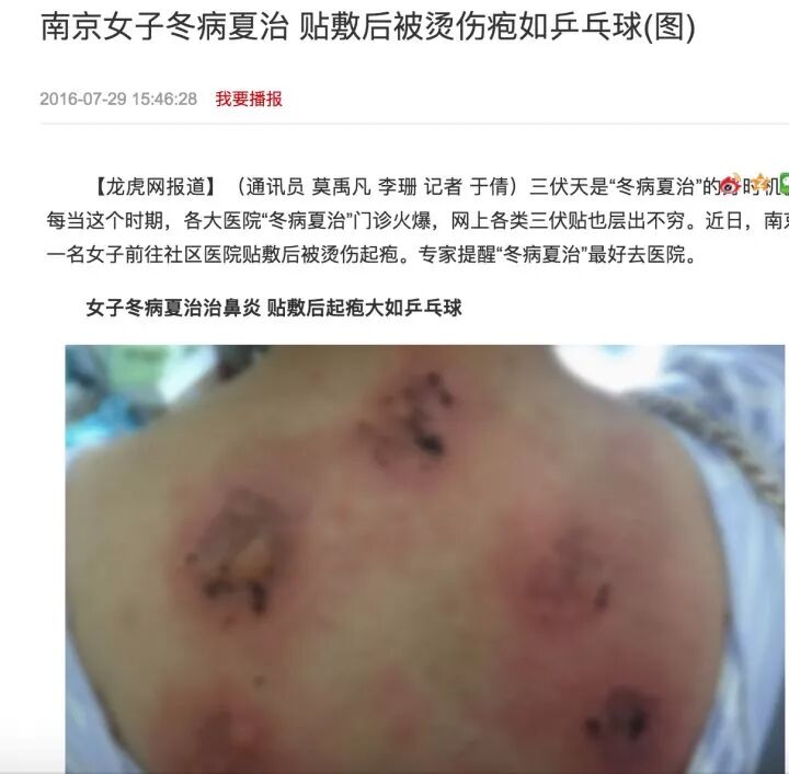 但今年不一样的是,江西省儿童医院竟然有92名儿童被"三伏贴"灼伤了,这些孩子的背部起了一片片水泡,有的红肿久久不消,看得人揪心。