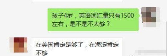 有家长调侃到:孩子的4岁,词汇量1500左右,在美国肯定算聪明的了,但是在北京海淀区还不够上学的要求......