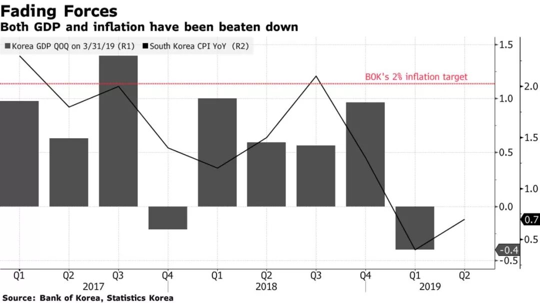 第一季度韩国国内生产总值较前三个月缩减0.4%,是2008年全球金融危机以来的最差表现。