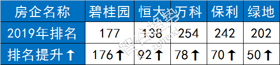 碧桂园、恒大、万科、保利、绿地,排名至少比上一年提升50名。而其他上榜的企业中,也有不少涉足房地产,如厦门建发、五矿集团等。