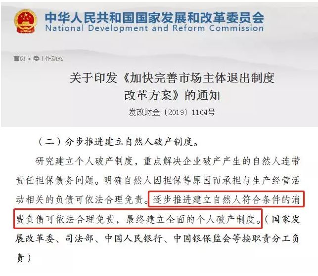 最近,国家13个部门联合发布方案,其中提到了要研究建立个人破产制度。