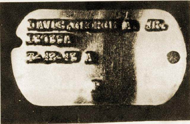在朝鲜博川郡青龙面三光里北面的山坡上,调查组发现了一架坠毁的F-86残骸,在座舱上一具破碎的尸体身上,有一个金属牌,上面写着:Davis·George·A——此牌正属于大名鼎鼎的戴维斯。