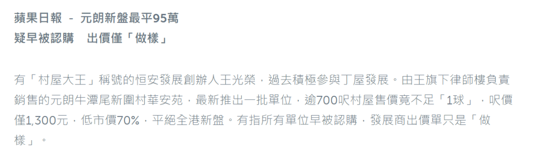 元朗的房价这么便宜,谁最不爽?当然是香港的金融地产寡头,一百倍,多少鲜明的对比,香港就那么巴掌大的一点地方!这一次暴徒们提出要拆元朗人的祠堂和山坟,是不是有点像房地产商的拆迁队?把元朗的村屋拆了,重新开发一片小区,地产商是不是又可以大赚一笔?