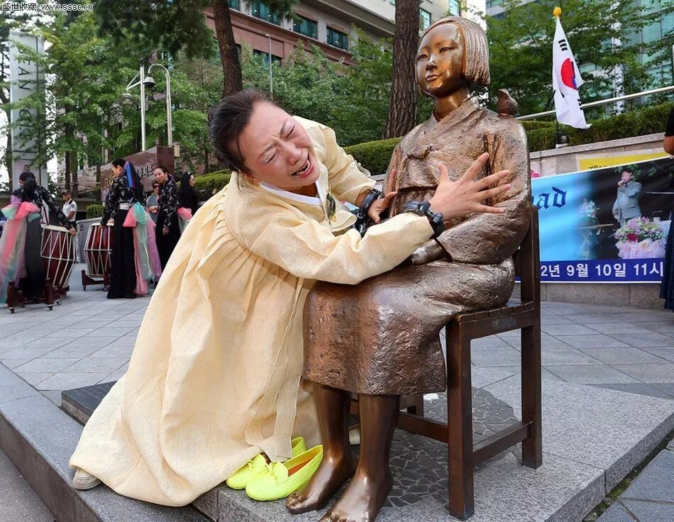 韩国女子抱慰安妇雕像痛哭(来源网络)